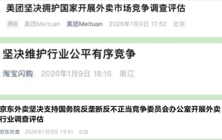 利剑出鞘了!2026年1月9日,国务院反垄断反不正当竞争委员会办公室宣布,将对外卖平台服务行业的市场竞争状况开展深入调查、评估。