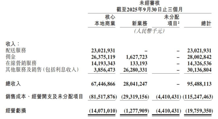美团这边,三季度核心本地商业业务业绩表现承压:收入674.47亿元,同比下降2.8%;由2024年同期盈利145.82亿元转为亏损140.71亿元,经营亏损率20.9%;主要因毛利率下降及用户激励、推广广告开支增加。直接导致该季度美团经营亏损高达198亿元。