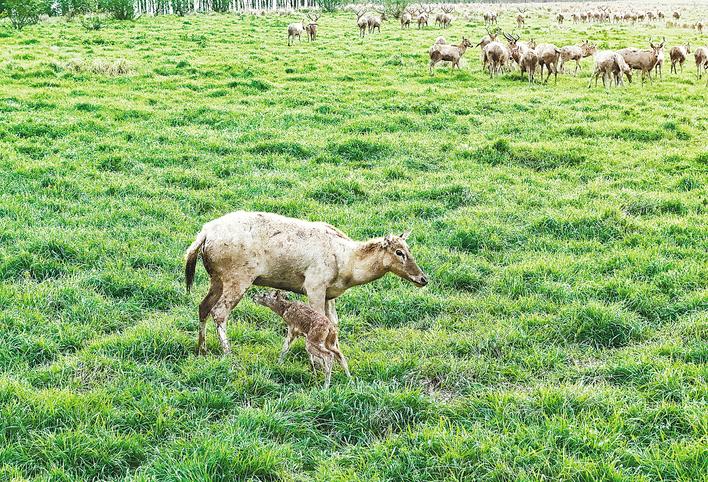 小麋鹿呱呱坠地 东方白鹳破壳出