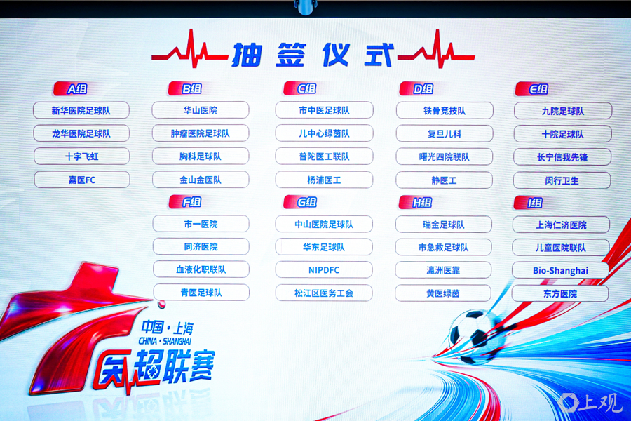 包括中山医院、瑞金医院、华山医院、肿瘤医院等多家单位在内,全市各级医疗卫生机构积极参与赛事,共有 36 支代表队、900 名医务职工报名参赛。目前,36 支球队通过规范抽签完成分组,赛事正式开幕式将于 5 月 16 日在卢湾体育场举办,届时将同步打响首场正式比赛。
