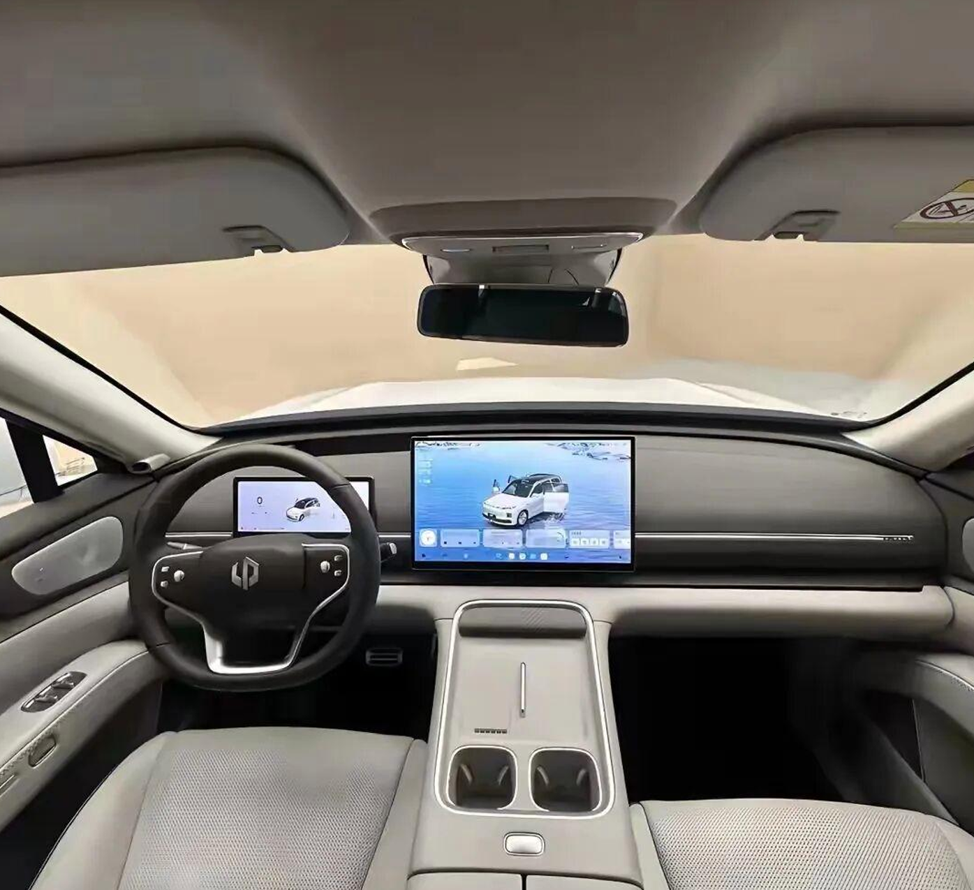 目前D99并没有公开它的内饰,但是从厂家发布的一些图片我们可以管中窥豹。从内饰图片能够看到,它使用的是上深中浅下黑的设计。方向盘暂时看不到,但是中控屏幕的面积非常大,有可能会使用左右的连屏设计,毕竟对于MPV而言,全家出行的概率非常之大,所以副驾娱乐屏幕必不可少。而从车顶来看,它的车顶有两个分开的全景天窗,前排和后排独立存在。最为关键的是,零跑家族一直以来强调的电动遮阳帘没有缺失。如果说其他车型大太阳底下晒一晒能够接受,MPV这里是万万不行的。零跑还在两个天窗的中间隔断设计了一个吸顶屏幕,具体的尺寸没有公布,但是和天窗作为对比,它的尺寸应该在22英寸上下,第2排和第3排是都可以观看的。