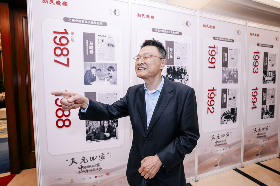 “哎,这张照片我熟悉,那次是1988年第二届比赛,我发挥挺好,赢了马晓春,第一次拿了天元赛冠军。”4月28日下午,刚走进在锦江饭店举办的中国围棋天元赛四十周年特展展厅,刘小光便被墙面上的那一张张印着赛事相关报道的新民晚报老版面吸引。“现在看起来很感慨,时间过得真快,一眨眼四十年了,你看我那时候头发还挺多。”曾经叱咤棋坛的天元赛冠军的话,引来现场一片笑声。“这一张张版面,一篇篇报道,记录着中国围棋天元赛的历史,也是一代代棋手的青春。”刘小光动情地说:“今天参加‘天元回家’活动的每一位棋手和赛事参与者,都能在这里找到曾经的自己,找回那段激情燃烧的岁月。”